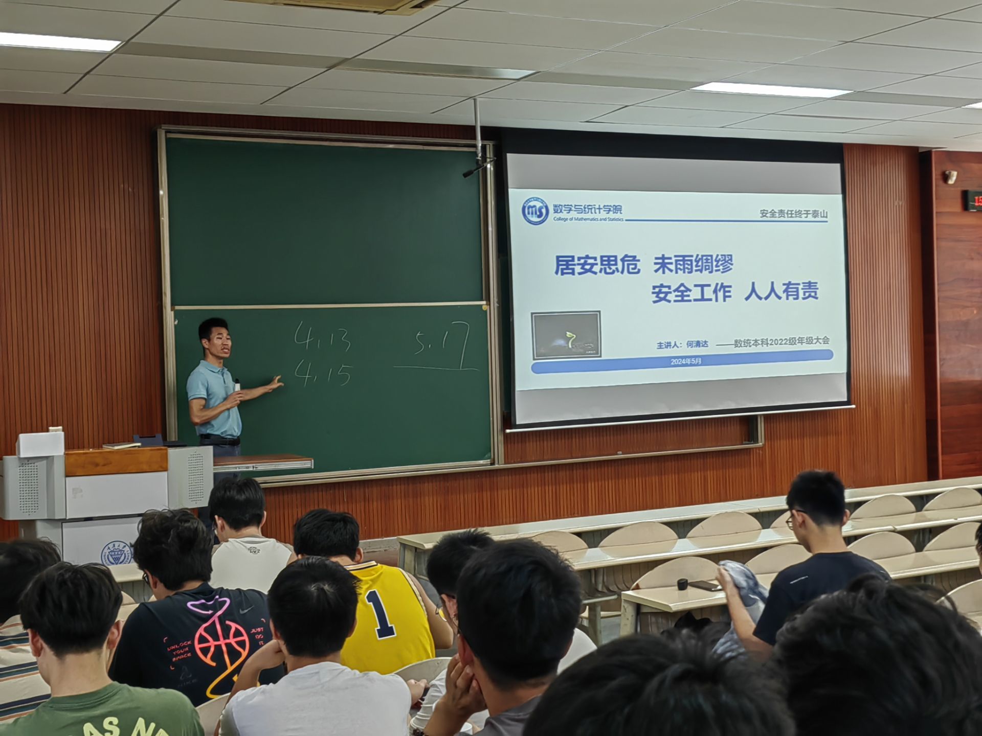 本科2022级年级大会暨安全教育主题班会在虎溪校区第一教学楼D1131教室召开,会议由辅导员何清达主持并主讲,本科2022级全体学生参加会议。