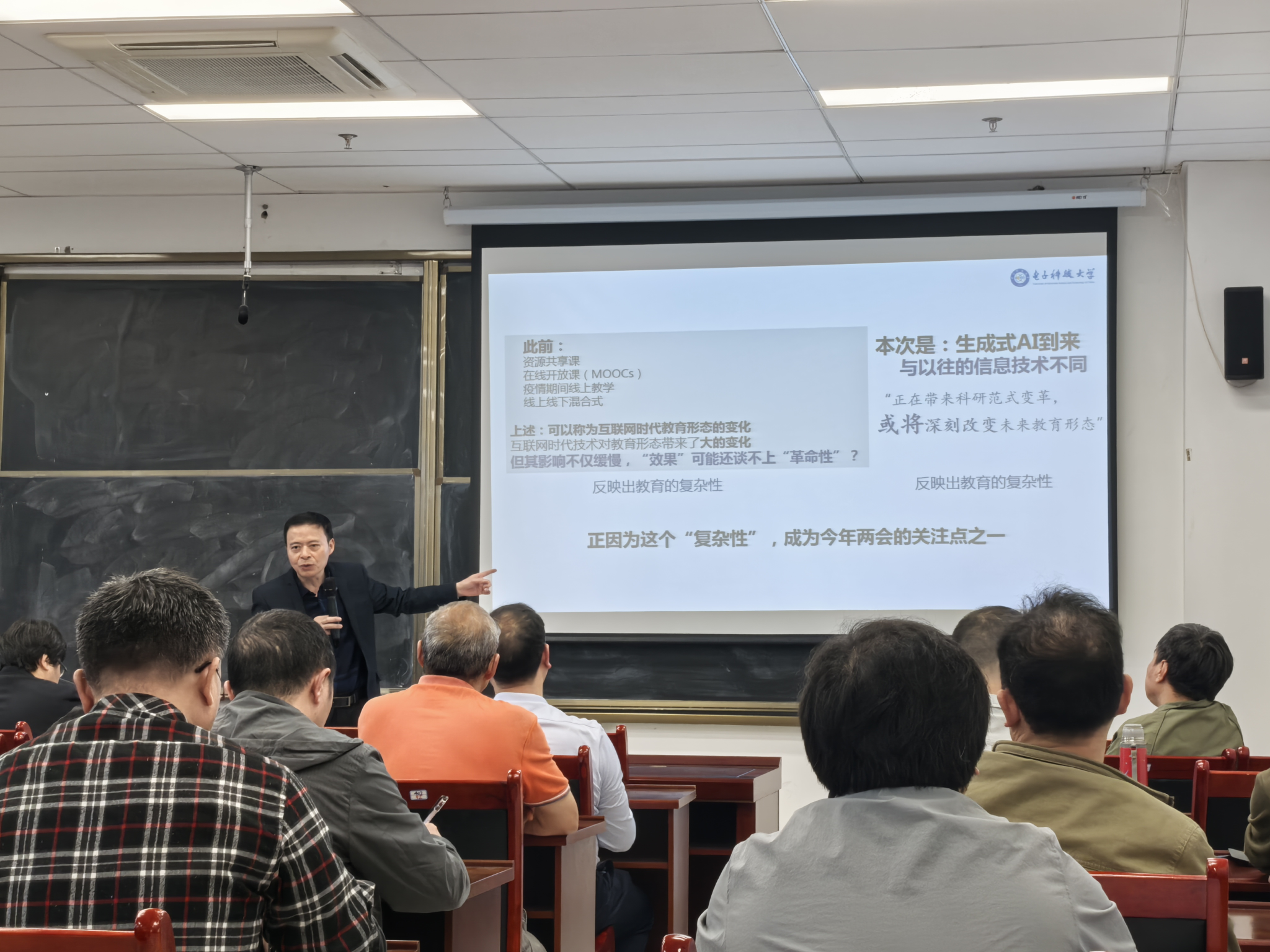 特邀国家级教学名师、电子科技大学黄廷祝教授作题为“人工智能时代的教学和教材建设”的专题报告。报告会在学院LD402会议室举行,学院党委书记刘卫红出席并主持报告会,学院全体教师参加了报告会。