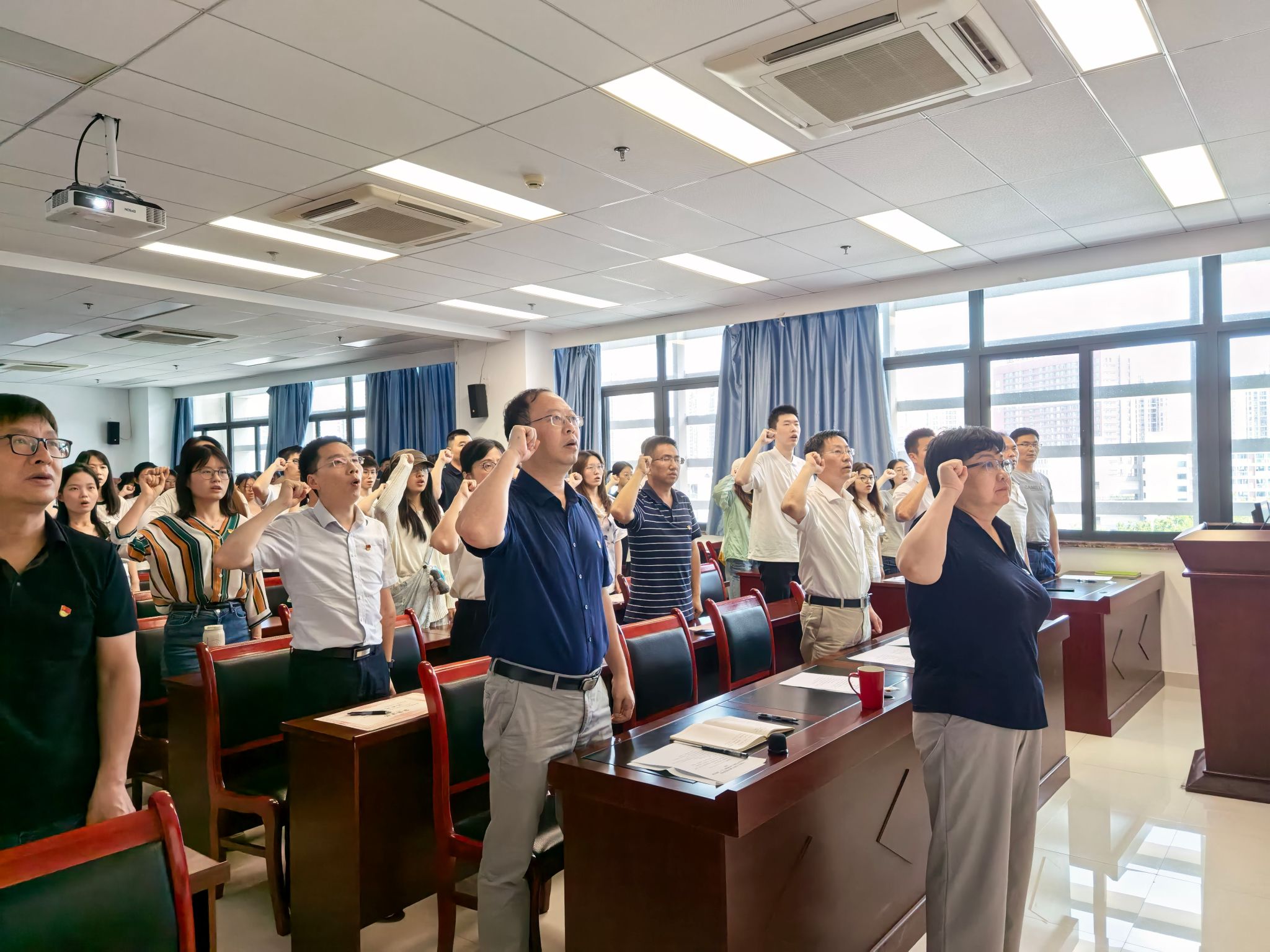 随后,刘卫红带领与会的全体党员重温入党誓词,铿锵有力的宣誓声响彻会场。表彰大会在《国际歌》声中结束。