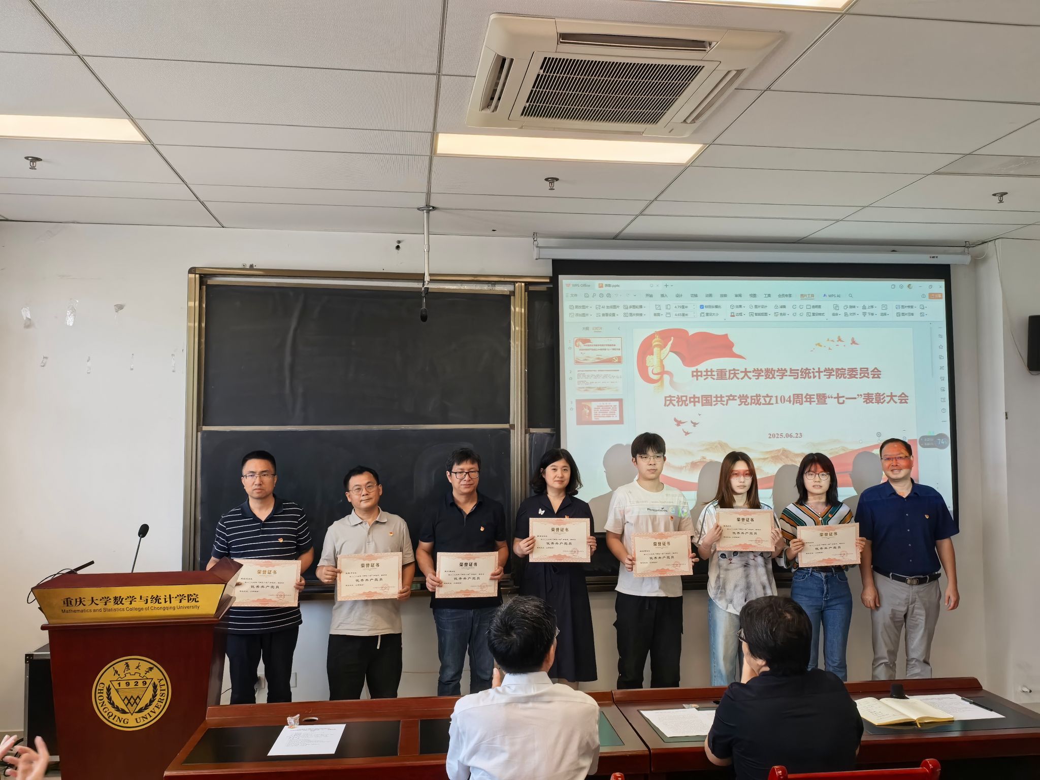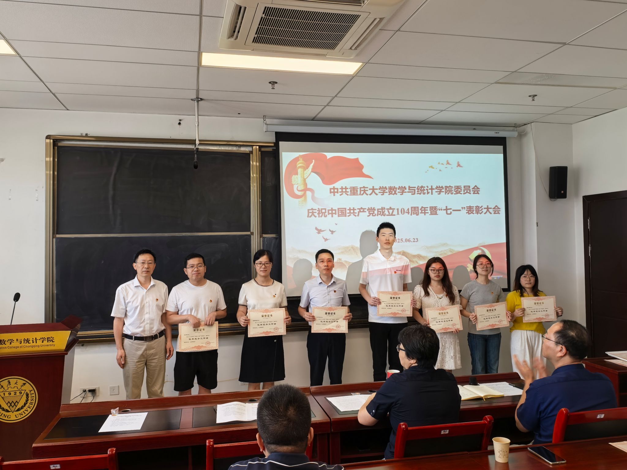 为庆祝中国共产党成立104周年,回顾党的光辉历程、讴歌党的丰功伟绩,推进深入贯彻中央八项规定精神学习教育走深走实,充分发挥先进典型的表率示范作用,激励广大党员奋发进取。2025年6月23日下午,苏畅AV 党委在LD402会议室举行了“七一”表彰大会。学院党委委员、获表彰的优秀党员、党务工作者、师生党员代表参加表彰会,会议由学院党委副书记、纪委书记何清达主持。