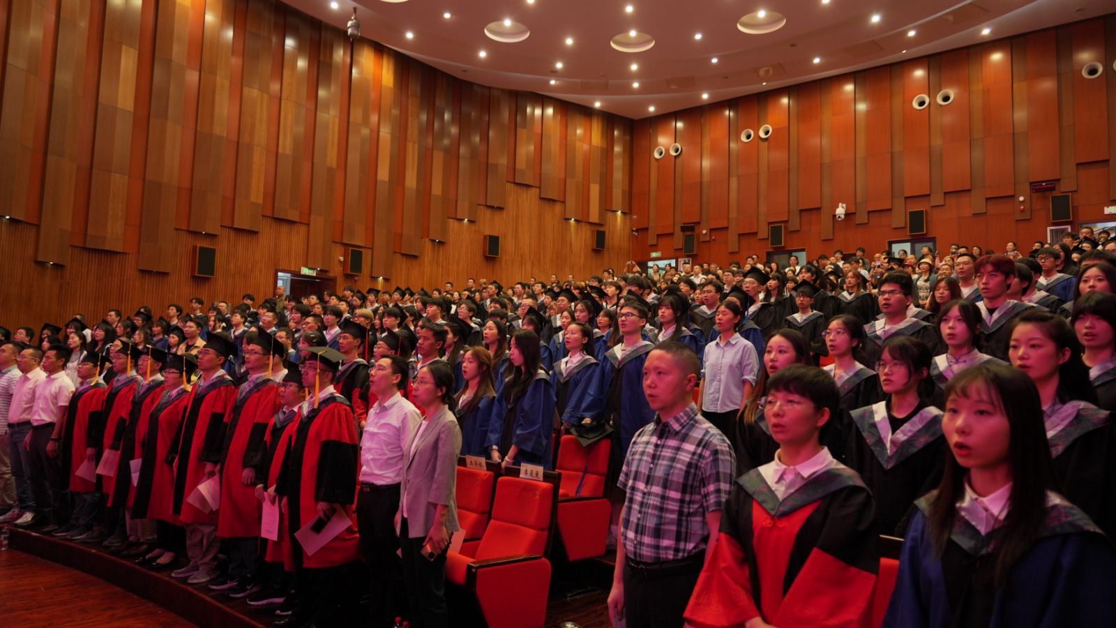 在激昂的乐曲声中,院学位评定分委员会委员郑重地为每一位毕业生拨穗正冠,完成授位。最后,师生齐唱《苏畅AV