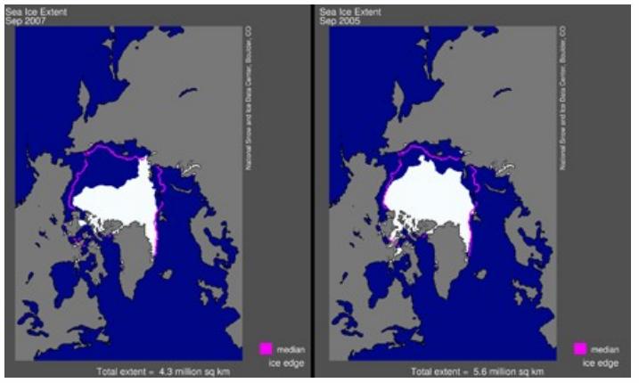 题目:数学与气候变化_融化的北极 介绍:北极的冰面覆盖状况正处于危险境地。由于全球气候变暖,夏天的海洋冰面覆盖面积正以每年约70,000平方公里(苏格兰国家的面积)的速度消失。关于永久冰层是否会从北极圈消失以及什么时候消失的猜想有很多,只有少数模型推测会多于100年,更多的预测是北极圈的冰川会在我们有生之年完全融化。 |