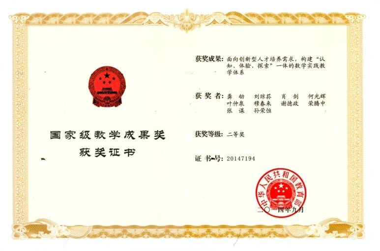 2014 年, 面向创新型人才培养需求,构建‘认知、体验、探索’一体的数学实践教学体系”获国家教学成果二等奖 2008 年,“培养大学生数学应用能力和创新素质的研究与实践”获重庆市教学成果一等奖 2010年苏畅AV 数学实验教学中心成为重庆市唯一的数学类示范中心