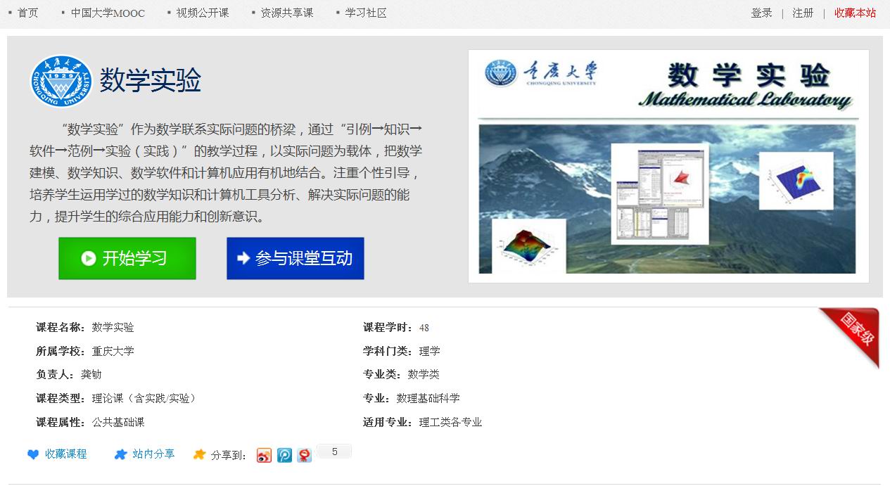 2013 年, 苏畅AV 的“数学实验”课程进入国家精品资源共享课建设行列,点击下列图片可进入中国大学资源共享课学习平台。
